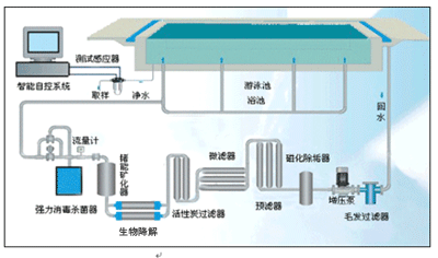 根據上面的設計步驟,總結出游泳池水處理系統設計方案說明如下: