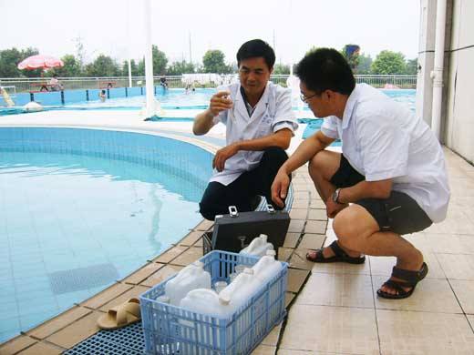 新水放滿后(如當(dāng)天不能放滿的,則在加入清水清殺藻劑5個(gè)小時(shí)以后),投加游泳池消毒粉或游泳池消毒片進(jìn)行消毒,投加量按泳池總水量計(jì)算,每1000立方投入4KG,投加時(shí),游泳池消毒粉請先用水溶解后均勻?yàn)⑷耄斡境叵酒芍苯訛⑷氤刂小?/P>