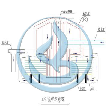 源水通過濾層,水中雜質被攔截積累起來,濾層阻力增大,造成水位上升,當水位上升到一定高度時,此時水通過一輔助虹吸管,整個系統形成自動虹吸,設備反沖洗開始,通過自動定時裝置,沖洗歷時2.5分鐘即可達到反沖洗效果。所以反沖洗工作周期取決于水質,沖洗周期可由數小時到數月。