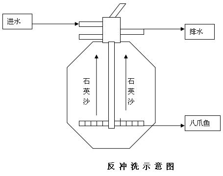 沙缸經(jīng)過一段時間的使用,積存的污物阻礙水流使其減弱。這時就要對過濾器進行清潔。將控制開關(guān)打到"BACKWASH"位置,這時水流就變成了反方向流動,水流八爪魚進入沙缸底部,再經(jīng)過沙層反沖上來,將以前捕集的污物,殘渣沖起從排水口排出。