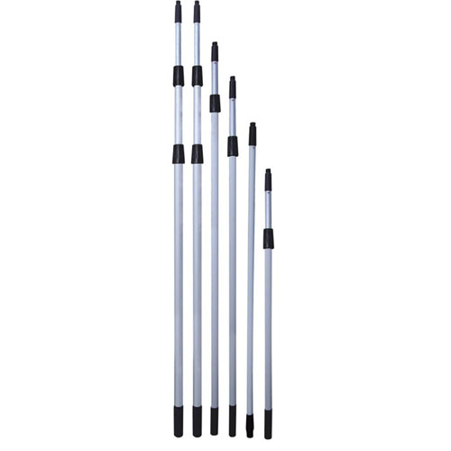 游泳池伸縮桿為兩段伸縮,有5米和8米兩種規格。5米的為兩段2.5米的通過伸縮桿接頭連接而成,8米的則為兩段4米的伸縮。伸縮桿的一頭為人工控制端,防滑,適合手握。另一端為通用接口,可以連接救生鉤、撈網、吸污頭、池刷等。